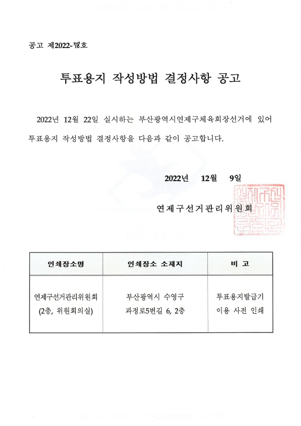 투표용지 작성방법 결정사항 공고
